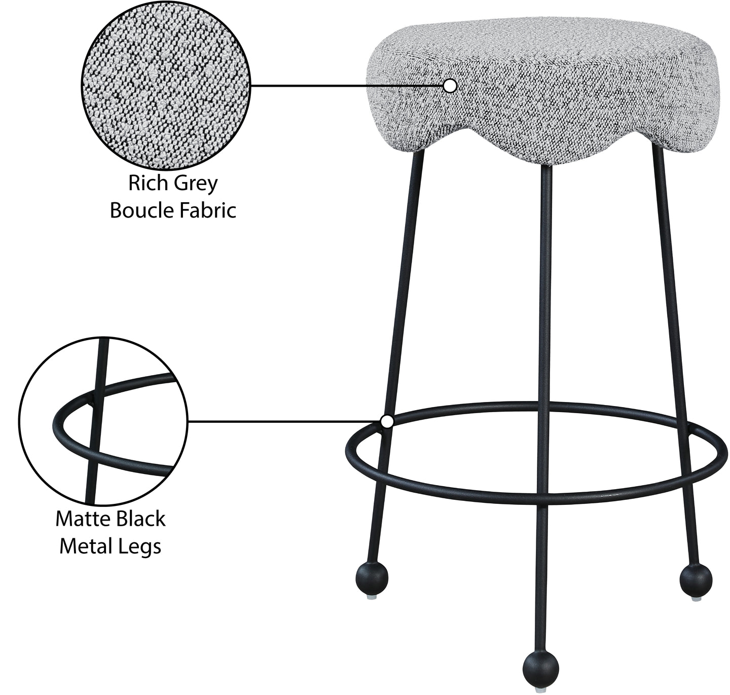 - Material: Boucle Fabric / Iron / Foam