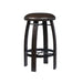 - Deep foam padding on the round seat provides comfort and a faux leather cover in variegated tones of brown