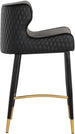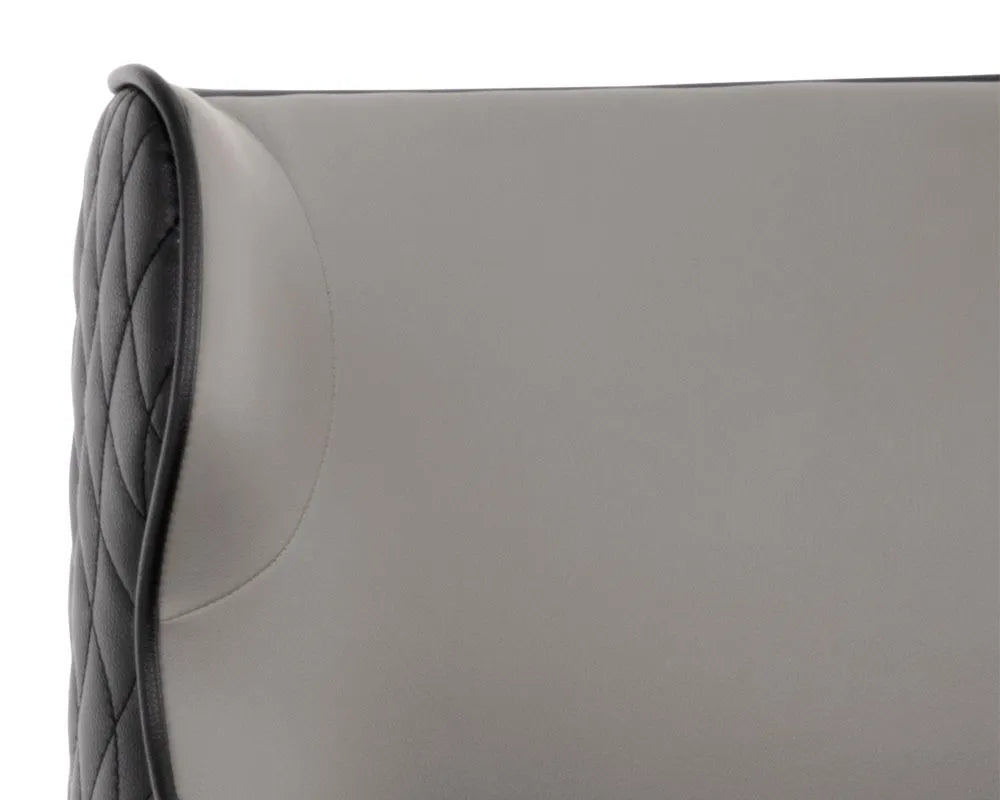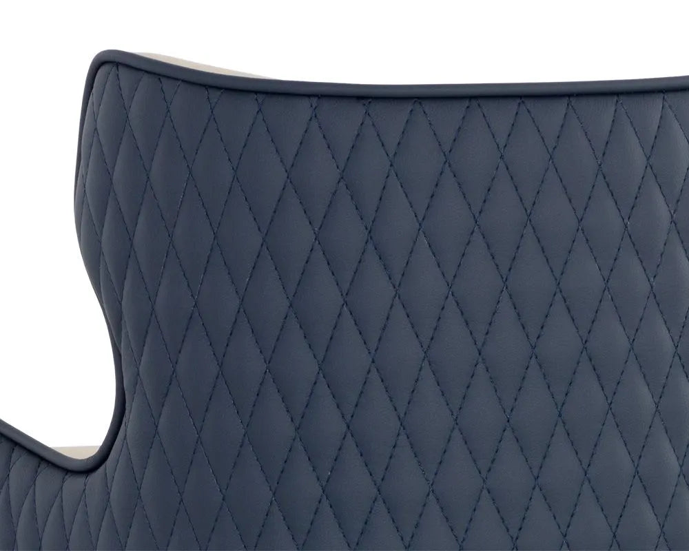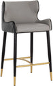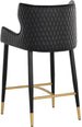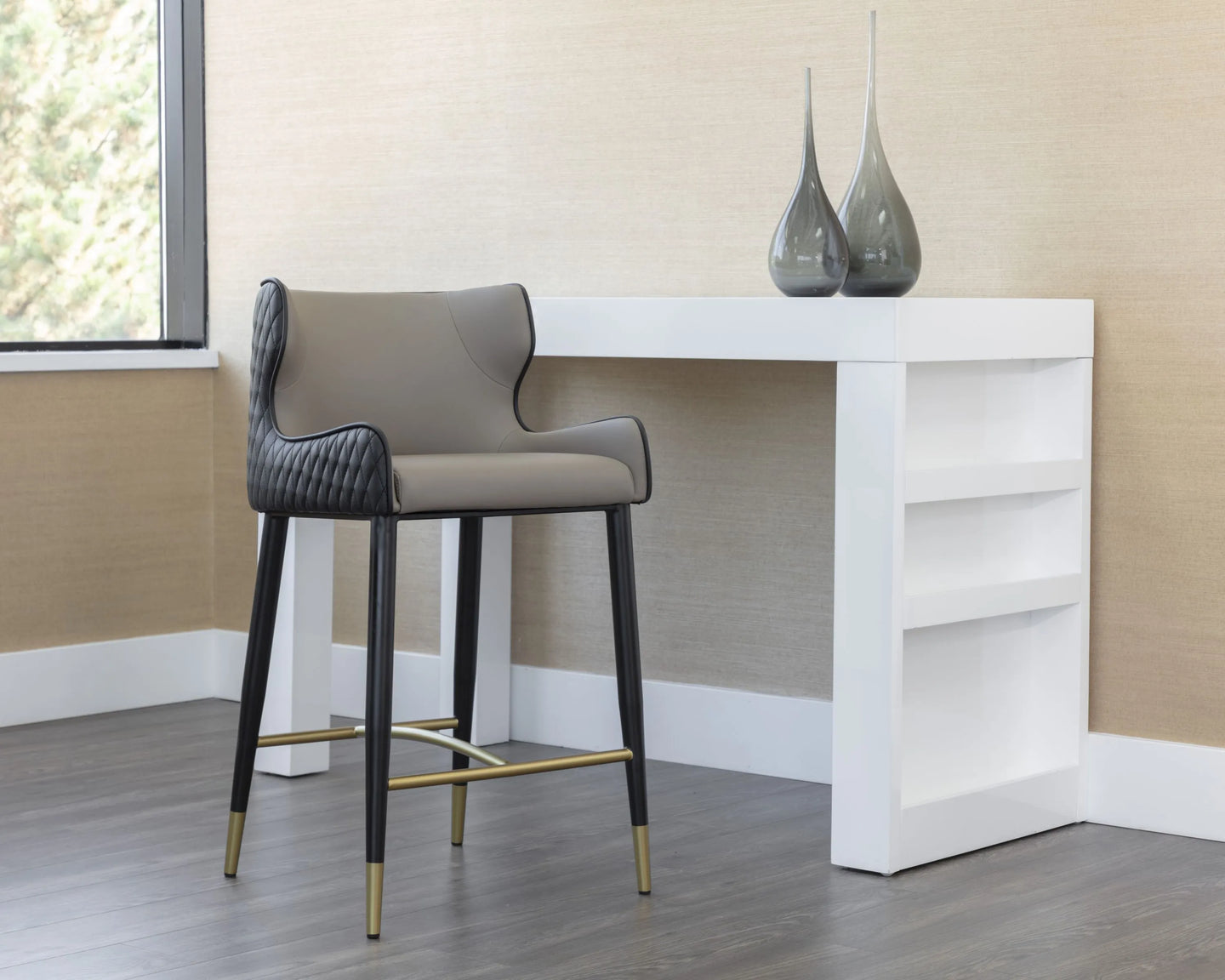 A classic counter stool featuring a substantial seat upholstered in contrasting dillon cream and dillon thunder faux leather. Diamond stitching on the seatback adds a hint of elegance while black wood legs and brushed gold foot caps complete the look. Handle With Care: This design has been crafted with faux leather. Faux leather is manufactured to reflect the natural characteristics of leather; as such, colour variations, markings, wrinkles, grooves, and light scratches are appreciated characteristics. No two pieces will be alike. Visit our Product Care page for more information on how to ensure the lasting beauty of this piece.
