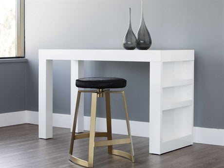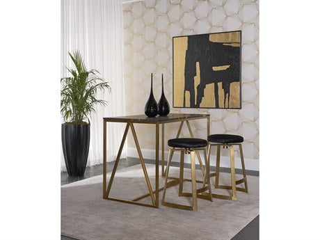 This stylish counter stool from our features a comfortable swivel seat in black cowhide and a bold brushed yellow gold steel base. A sophisticated addition to kitchen environments. Suitable for various dining, kitchen and bar spaces of all sizes. As cowhide is a natural material, organic markings on the animal may still be visible and there may be apparent differences in hair length, colour, and pattern. No two pieces are alike and images on site may not capture these qualities precisely. Made in India. With refined craftsmanship, this design was brought to life by skilled local artisans. By nature, these materials develop unique imperfections such as fissures, markings and colour variations for a truly one-of-a-kind piece.