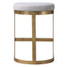 Simplistic But Sturdy, This Statement Counter Stool Features A Thick Hand Forged Iron Base Finished In A Mottled Antique Gold Leaf. Plush Seat Is Tailored In An Off-white Linen Blend Fabric. Seat Height Is 26".Product Features