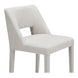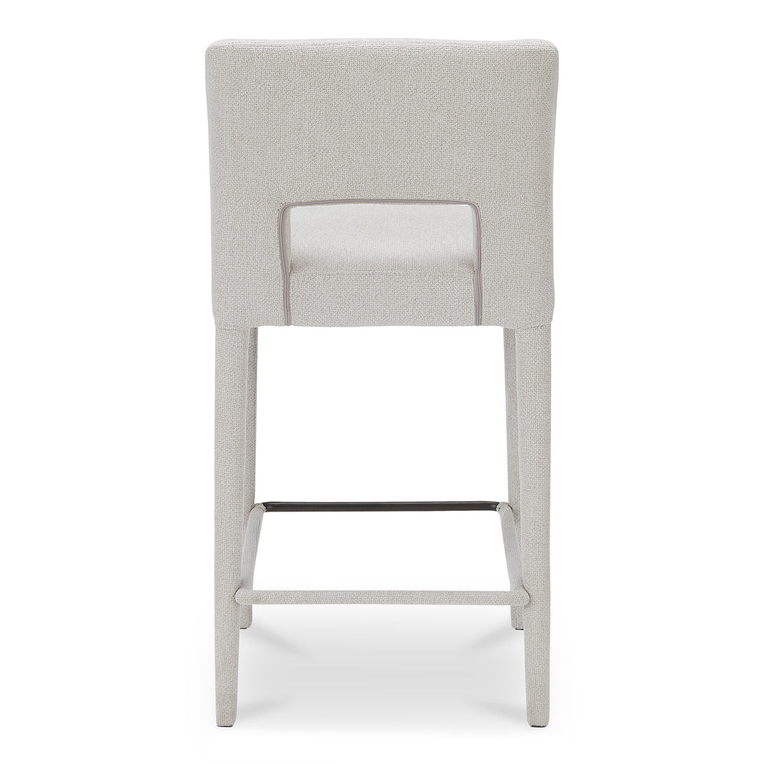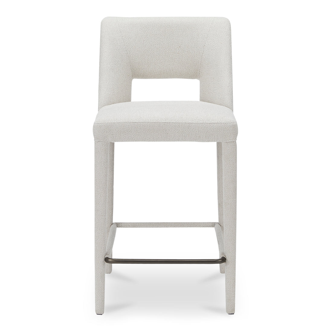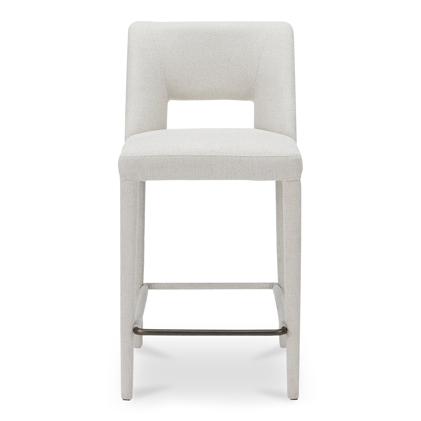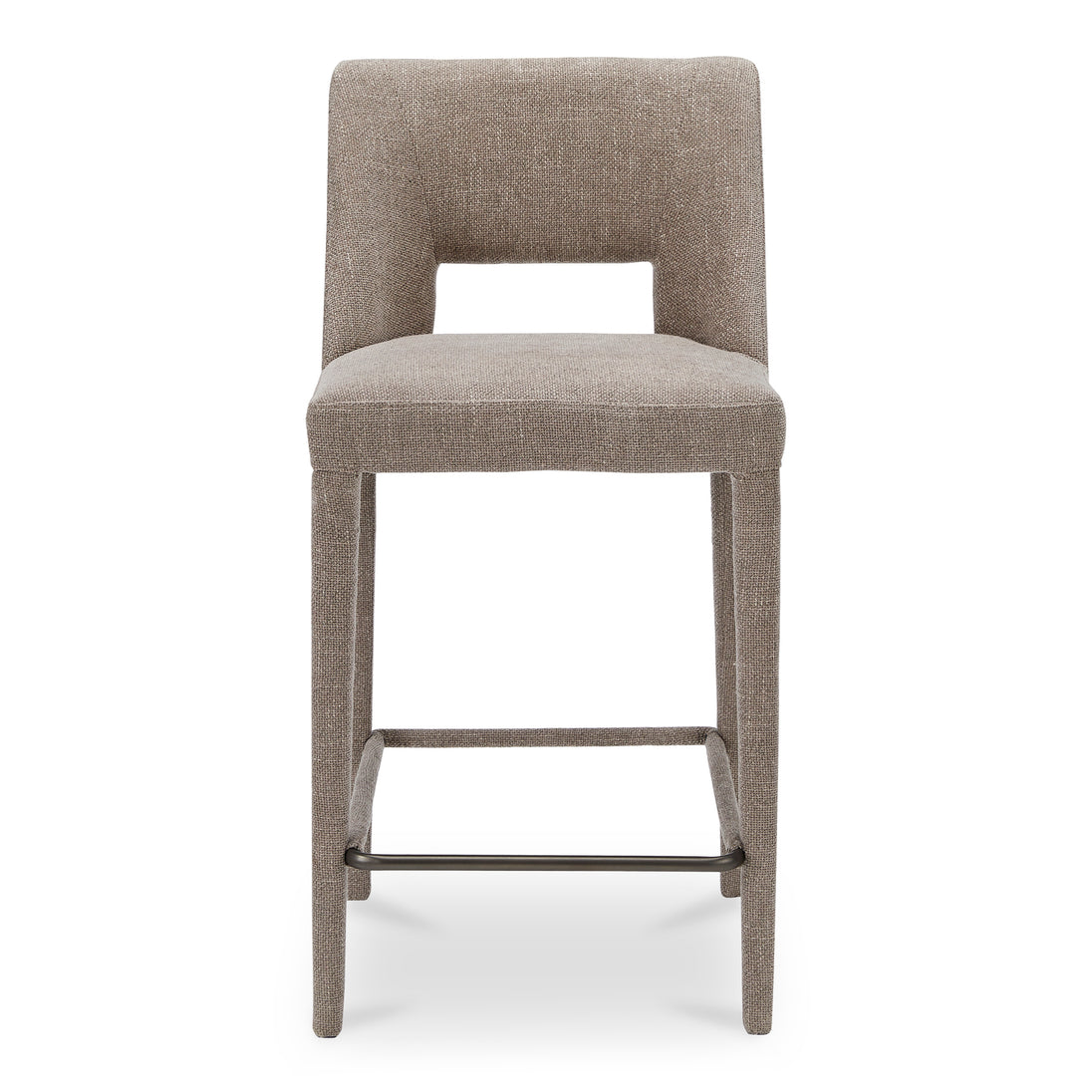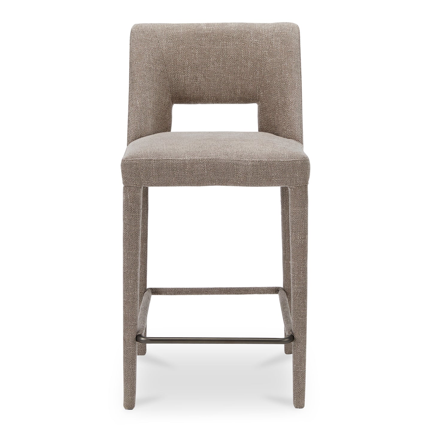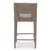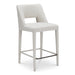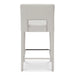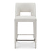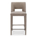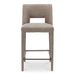 Fully upholstered in light brown performance fabric, the Joyce counter stool's cohesive silhouette exudes sophistication. The carved lower backrest adds visual lightness, while extended sides offer cradling support.