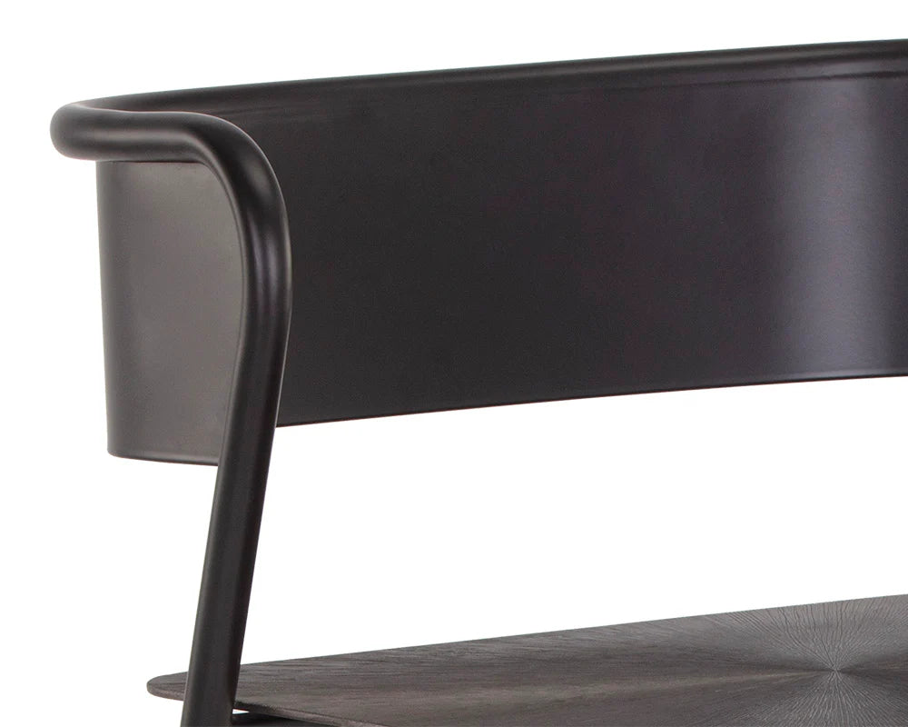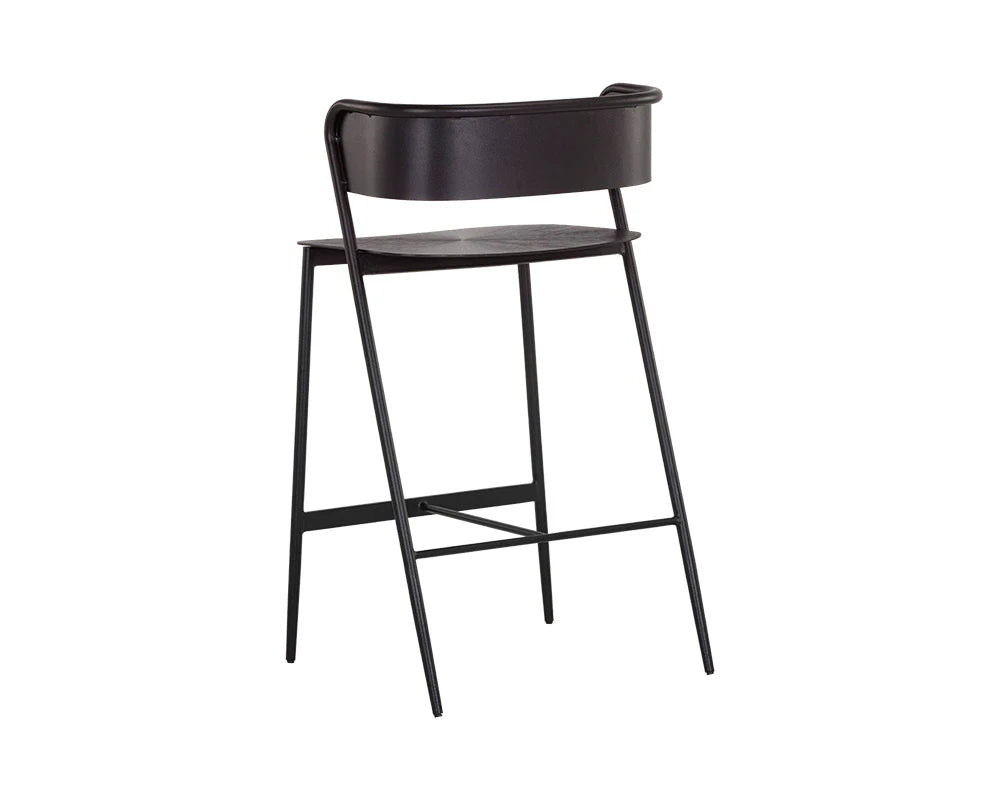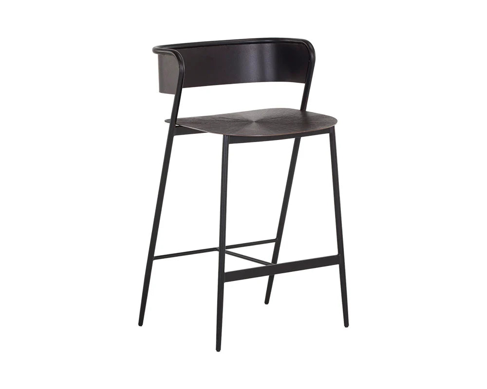 A handsome and sleek counter stool that features a modern design filled with rich details. Crafted from gunmetal iron with a bronzed finish and completed with a stylish starburst pattern on the seat. Made in India. With refined craftsmanship, this design was brought to life by skilled local artisans. By nature, these materials develop unique imperfections such as fissures, markings and colour variations for a truly one-of-a-kind piece.