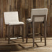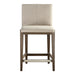 Gently Sloped Padded Seat In A Neutral Linen Blend Fabric Rests Within A Solid Birch Wood Frame Finished In Light Walnut, With A Brushed Nickel Metal Kick Plate. Seat Height Is 26".Product Features