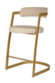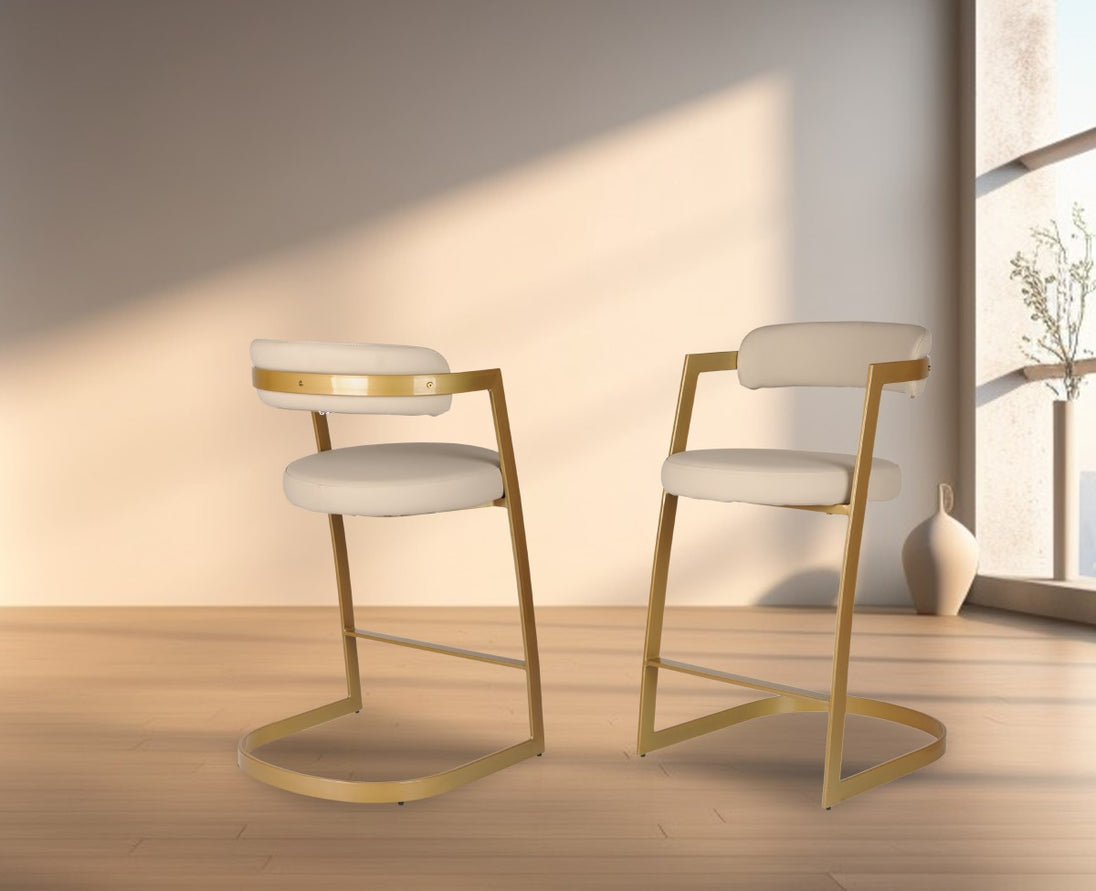 The Layla Counter Stool set is a sophisticated and stylish seating option for your kitchen or bar area This set includes two counter stools designed with a contemporary aesthetic to enhance the look of your space. Featuring a curved backrest and convenient footrest, the Layla Counter Stool set offers excellent support and comfort while you sit. This ergonomic design reduces strain and ensures that you can relax and enjoy your meals or conversations with ease. The golden-finished metal frame adds a touch of elegance and glamour to its overall appearance. The gold finish beautifully complements the black premium fabric cover, creating a striking contrast that enhances the stool's visual appeal. The premium fabric cover of the stool adds a luxurious and refined touch. Not only does it provide a comfortable seating surface, but it also adds to the overall aesthetic of the stool. The fabric cover is chosen for its durability, ensuring that the stool can withstand regular use and maintain its quality over time.