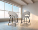 The Mila Counter Stool Set is a stylish and functional seating option for your kitchen or bar area. This set includes two counter stools designed with a contemporary aesthetic to enhance the look of your space. The counter stools feature a curved backrest and a convenient footrest that provide excellent support and comfort while you sit. This ergonomic design allows you to relax and enjoy your meals or conversations. The splayed legs are powder coated to ensure durability and stability, giving the stools a modern and sleek appearance. The premium fabric cover of the Mila Counter Stool adds a touch of luxury and refinement to its overall look. The fabric is chosen for its durability, ensuring that the stools can withstand regular use and remain in great condition for years to come.