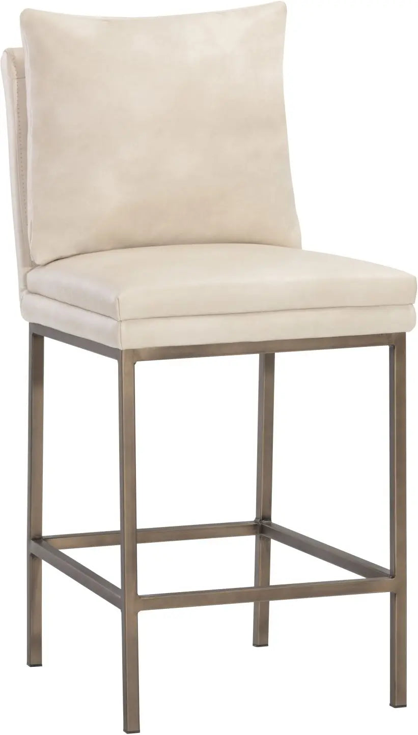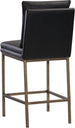 This counter stool features a clean and comfortable design. Designed with a cushion-like seat back in bravo black faux leather with antique brass iron legs. Also available in bravo cream faux leather. Suitable for various dining, kitchen and bar spaces of all sizes. Handle With Care: This design has been crafted with faux leather. Faux leather is manufactured to reflect the natural characteristics of leather; as such, colour variations, markings, wrinkles, grooves, and light scratches are appreciated characteristics. No two pieces will be alike. Visit our Product Care page for more information on how to ensure the lasting beauty of this piece.