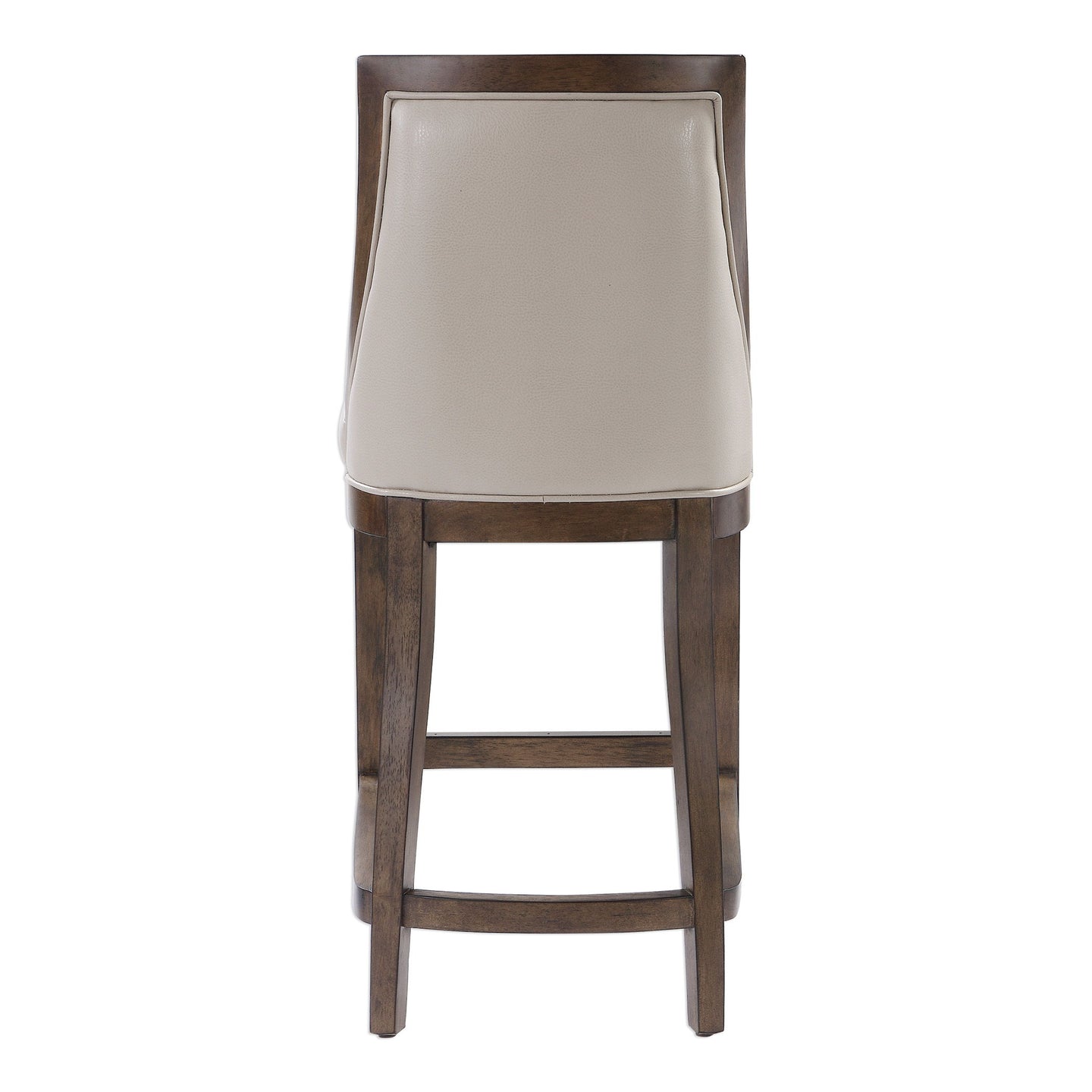 Transitional Versatility Is Embodied In This Classic Counter Stool, Tailored In A Faux Pebbled Leather In Cappuccino, With A Contrasting Smooth Walnut Finished Solid Wood Frame. Antique Bronze Finished Metal Kick Plate. Seat Height Is 27".Product Features