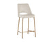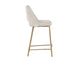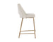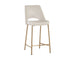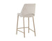 Dashing with contemporary style, this counter stool is designed with a refined touch. Upholstered in bergen french blue and taupe fabrics with a stylish cutout on the seatback. Completed with an antique brass stainless steel base. Also available in a dining chair version.