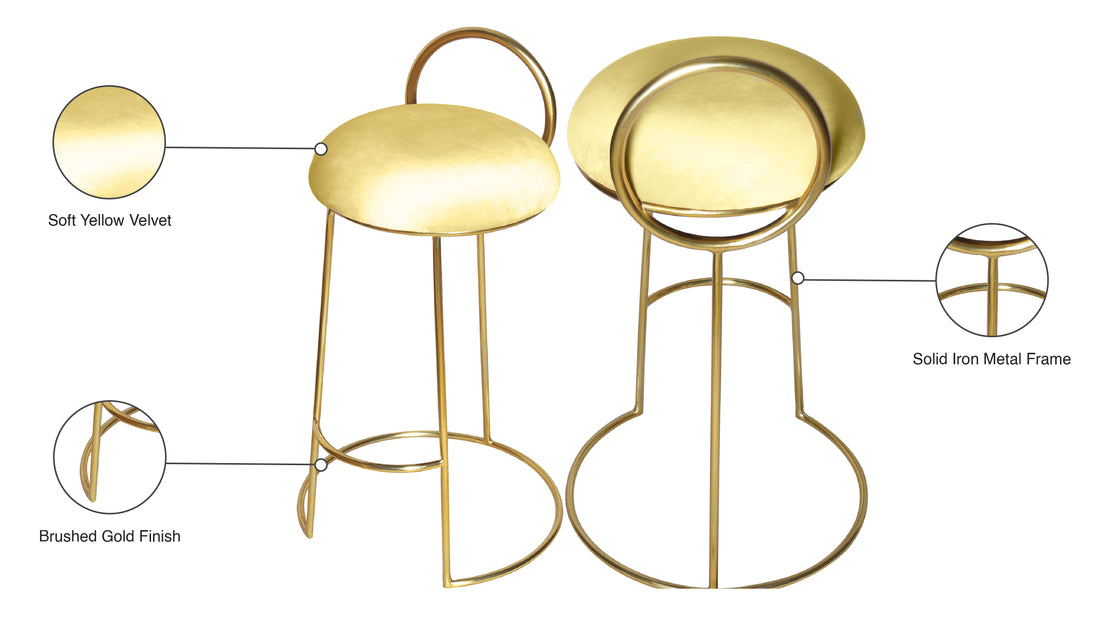 Elegance comes to your home counter with this Ring velvet counter stool. Soft black velvet makes this a sleek addition to your home counter or bar setup, while a brushed gold finish ensures its sophisticated demeanor at breakfast time or during evening cocktail hour. The padded cushion keeps them happy while they dine or drink, and this counter-height stool features a solid metal frame for strength, resilience and durability.