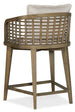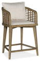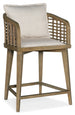 Create a calming resort-inspired retreat in your home with the laid-back, 35-inch high Sundance Barrel Back Counter Stool. The appealing lattice design of the cane seat back combines with a loose back pillow and an upholstered seat covered in the Zuri Cream performance fabric to invite you to linger and relax. The legs, arms and footrest are finished in Cliffside, a rich brown finish with light burnishing on the edges, and the footrest has a Copper sheet for durability and an extra design detail.