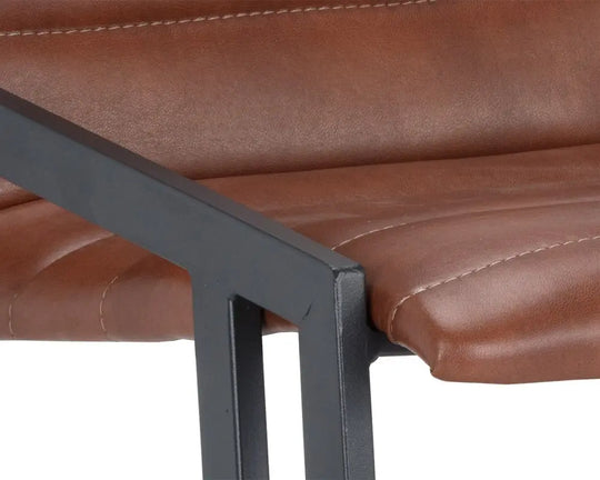 An industrial chic counter stool. Features horizontal channel tufting on the seatback with an exposed black steel frame. Stocked in cantina black and saddle bonded leather. Suitable for various dining, kitchen and bar spaces of all...Sale price From $213.00Regular price $499.00Sale price From $213.00Regular price $499.00