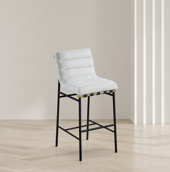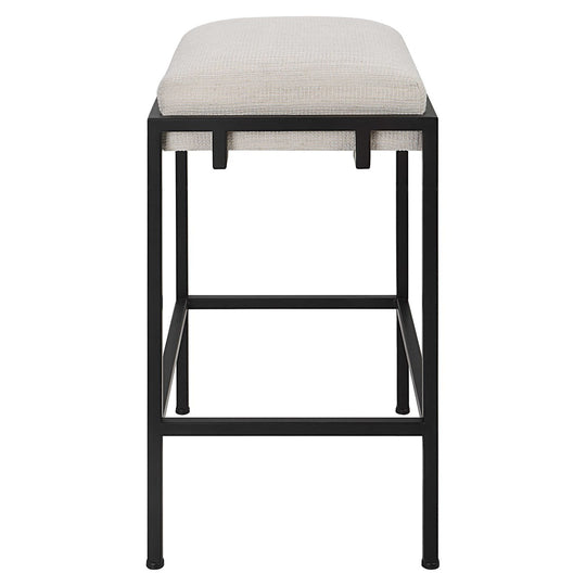 A classic and sophisticated color combination, this counter stool features a sleek matte black iron frame and is paired with a plush upholstered seat in a crisp white waffle textured polyester. Seat height is 27". Dimensions:18...Sale price $559.00Regular price $899.00Sale price $559.00Regular price $899.00 -