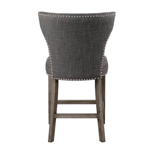 Supportive Comfort In A Curved Back Design, Covered With Warm Charcoal Gray Linen And Accented By Polished Nickel Nail Head Trim. Honey-stained Frame Is Finished With Heavy Gray Wash, With An Antique Brass Finished Kick Plate....Sale price $689.00Regular price $999.00Sale price $689.00Regular price $999.00 -