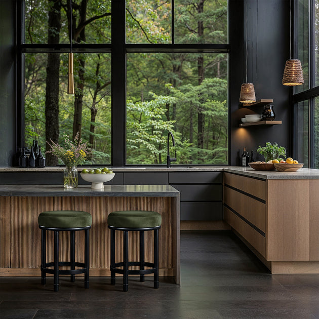 Carly Vegan Leather Seat / Boucle Fabric Back Counter Stool