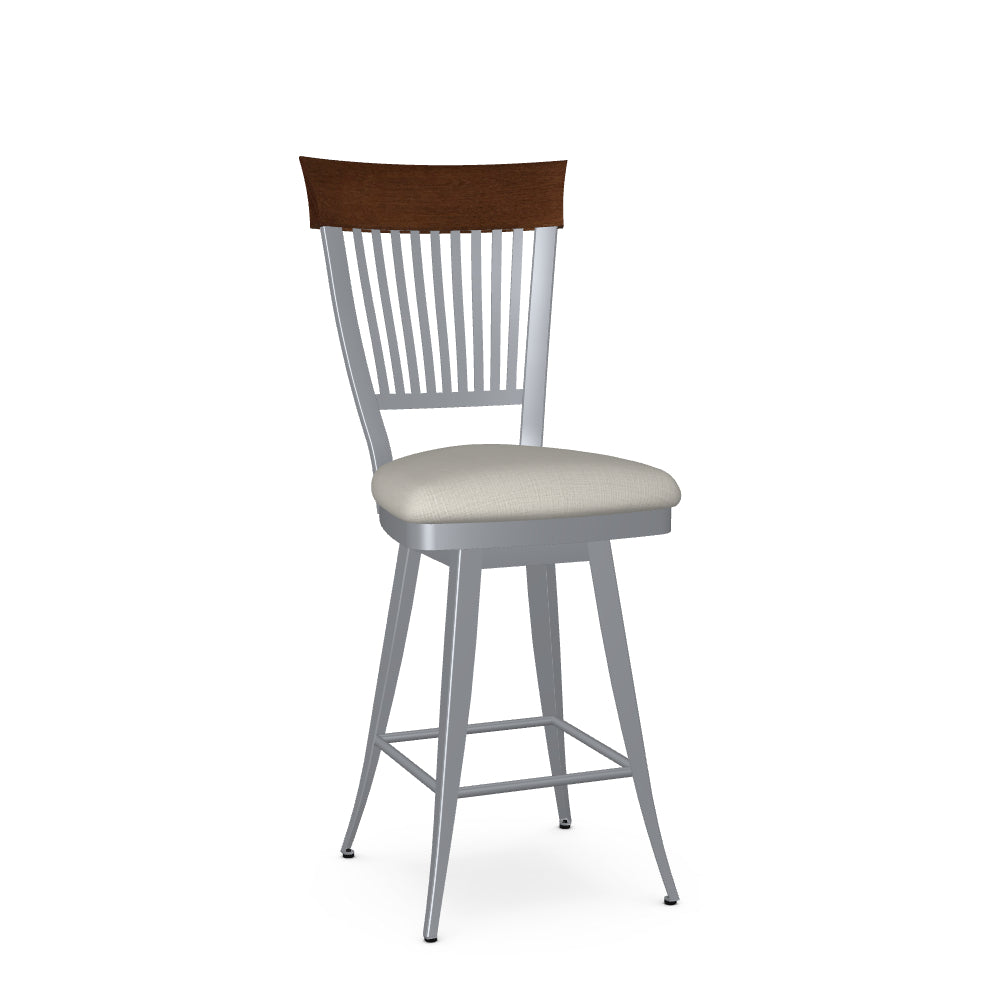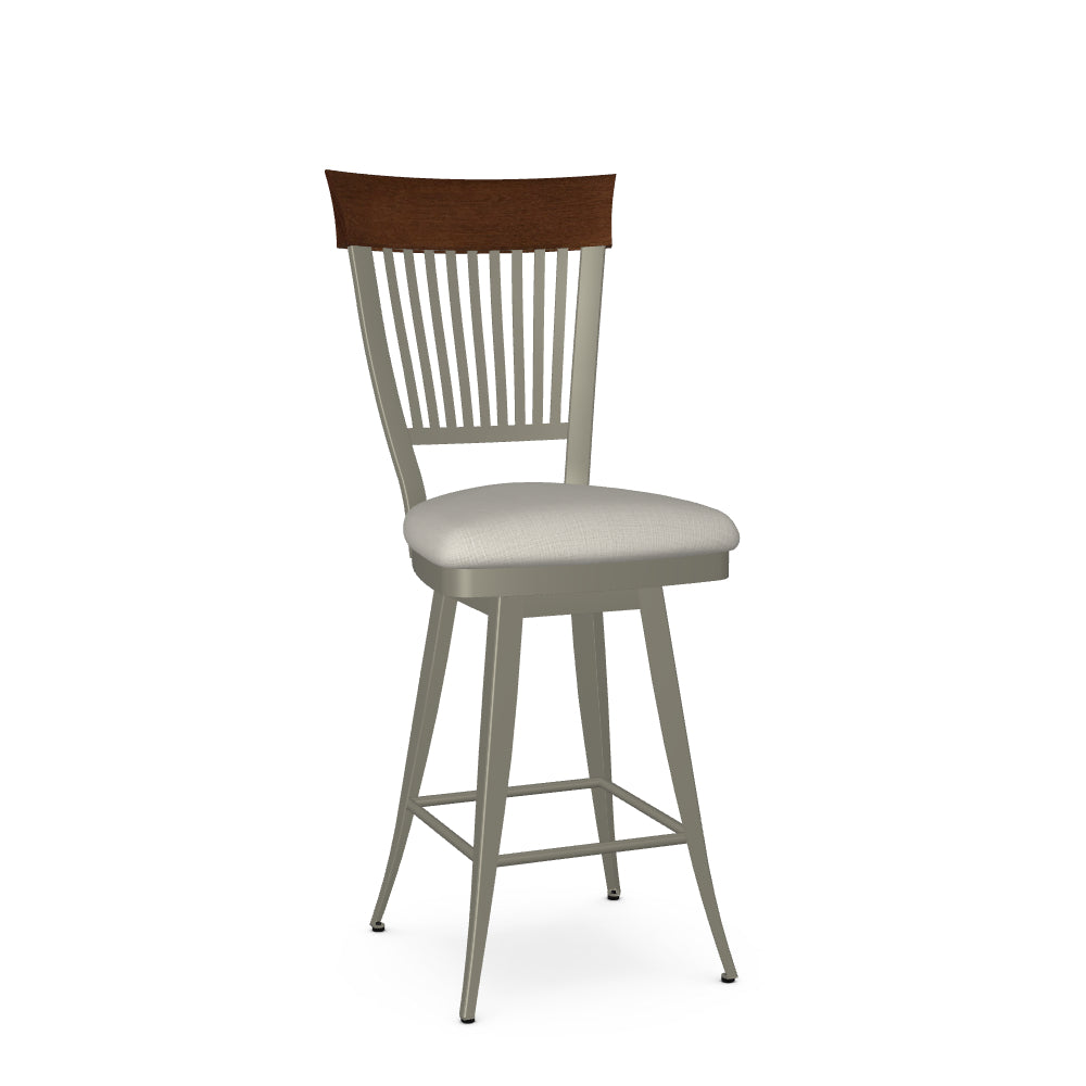 Material: Upholstered seat and metal backrest with solid wood (birch) accent