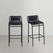 Hop up and take a seat at your breakfast bar with this Dax vegan leather counter stool. Featuring soft black vegan leather paired with a matte black metal frame, this counter stool makes a bold statement no matter what your decor style. Its contemporary design is perfect for the modern home, with its tall legs providing ample space for you to stretch your legs while you eat breakfast. A thin footrest wraps around the stool's legs, allowing you to rest your pups while enjoying your morning meal.