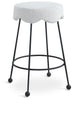 Give your dining area a unique touch with this Fleur black fabric counter stool. Its rich black boucle fabric seat is padded with foam, providing comfort while you're sitting, and its matte black metal legs ensures sturdiness and durability. A round footrest encircles its three metal legs, giving you a place to rest your feet while sitting at your breakfast counter or bar. A contemporary design ensures this counter stool matches your existing home decor.