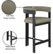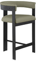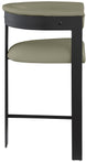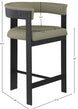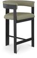 Update your kitchen counter or home bar with this Olive green Romeo vegan leather bar/counter stool. It boasts a soft Olive green vegan leather seat and a curved back for comfortable and contemporary seating. The matte black metal frame ensures sturdiness and a sleek aesthetic, impressing family and guests alike. With its modern design, this stool effortlessly complements your space, making it a superb addition to your space.