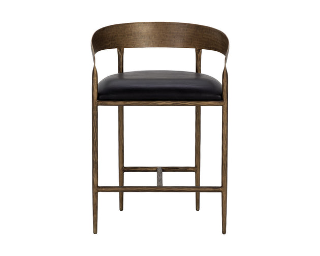 Zuni 26" Counter Stool with Swivel in Black Faux Leather and Walnut