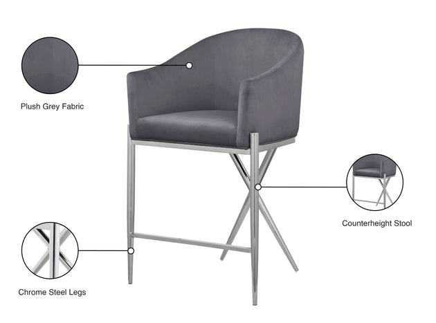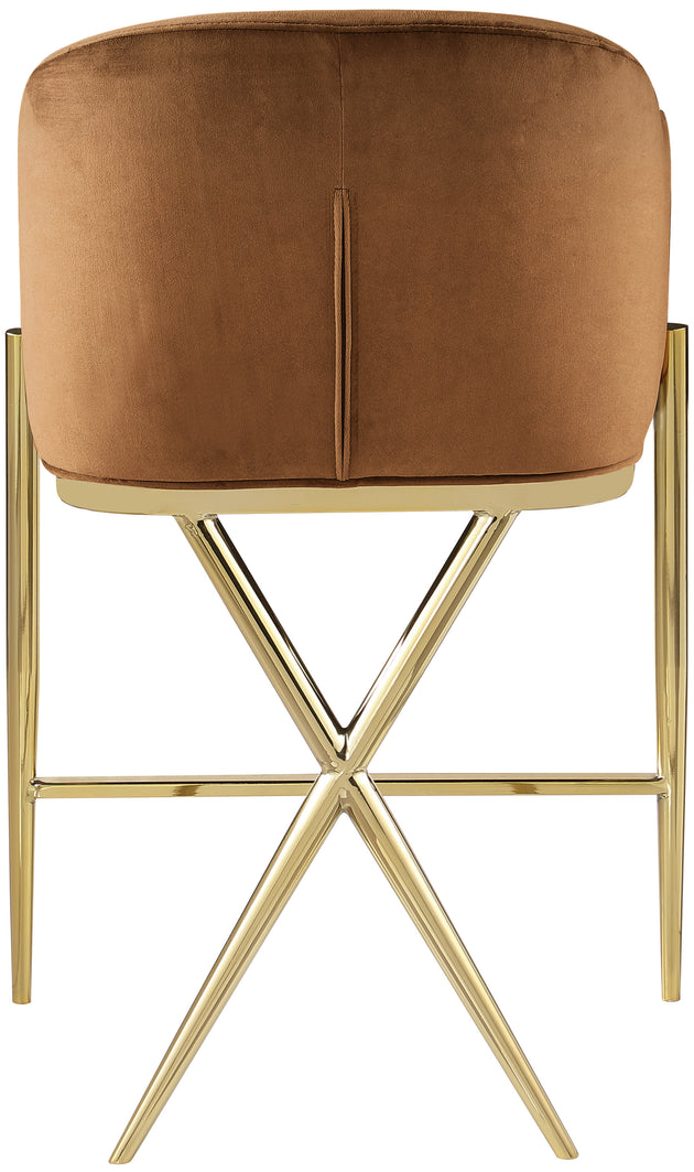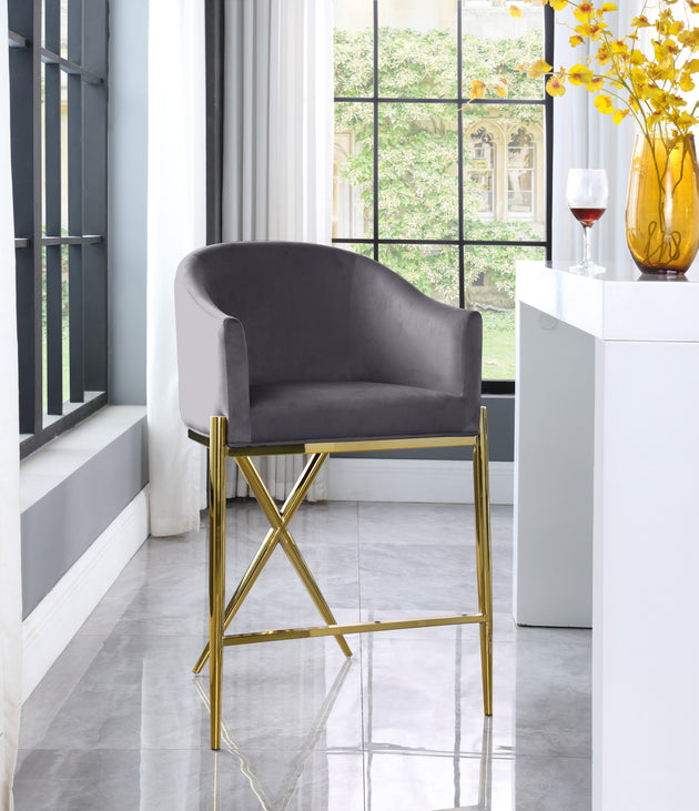 Victoria Counter Stool Taupe Color Velvet Fabric Gold Legs