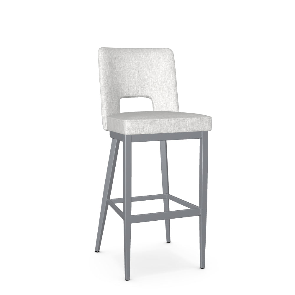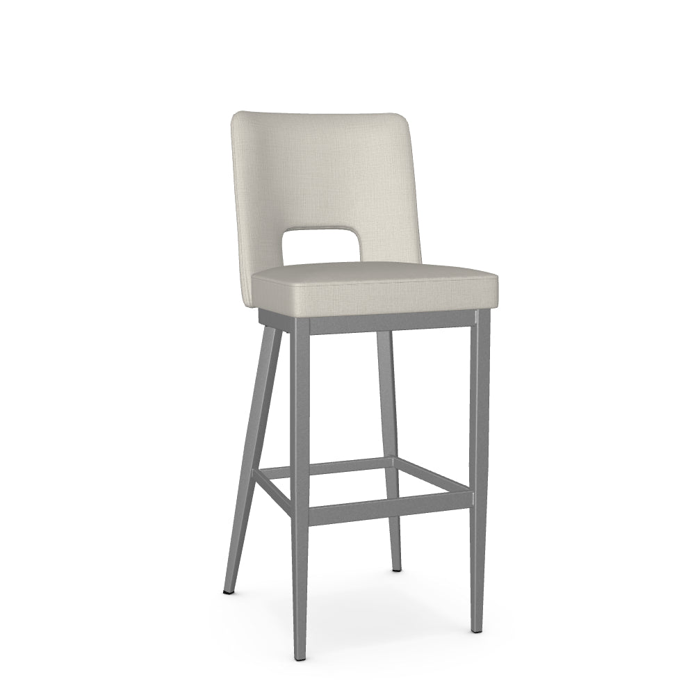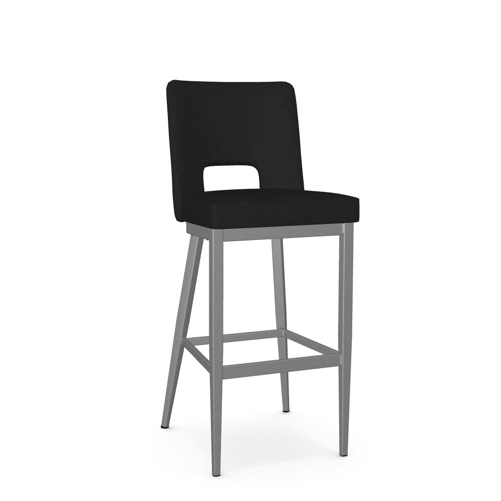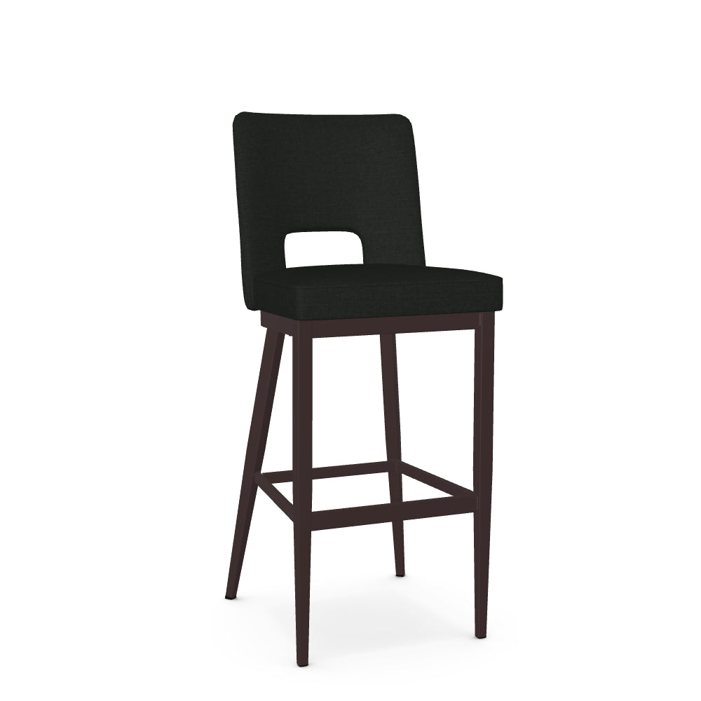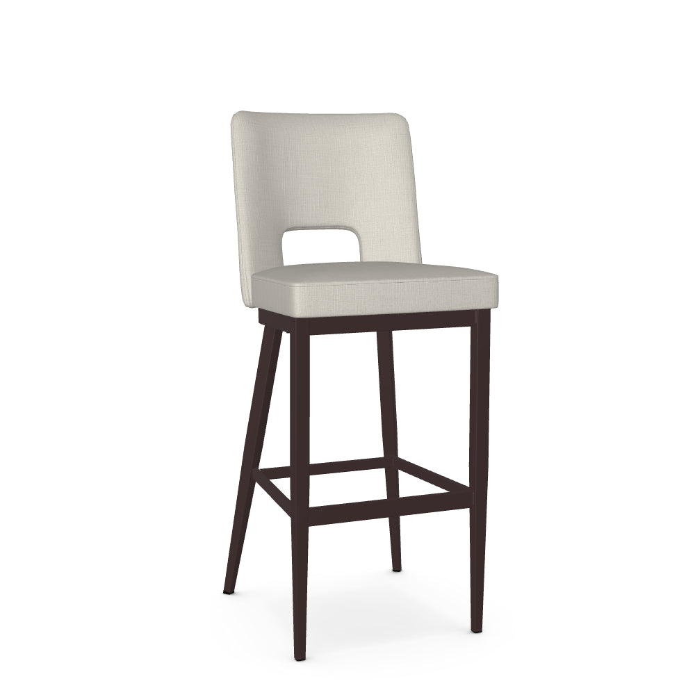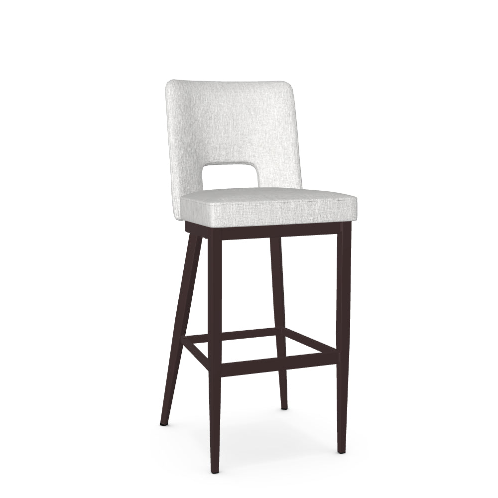 The Bryana stool is crafted for those who are looking to add a farmhouse, transitional or contemporary touch to their living space. Its upholstered backrest is gracefully curved for optimal comfort, while the open back design adds sophistication to the chair's aesthetic. Supported by a metal base with elegantly angled back legs, this stool is as sturdy as it is beautiful.