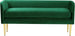 Sit or recline in exquisite comfort on this Audrey bench from Meridian Furniture. The velvet is smooth and soothing to touch, perfect for relaxing after a long day of activities. The contemporary design suits modern households while the 20-pound weight makes it easy to move around as needed. Sit the bench in the living room for extra seating or by the front door for putting on shoes.