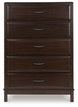 - 5 smooth-gliding drawers with dovetail construction and metal center mount drawer guides (top drawer felt lined)