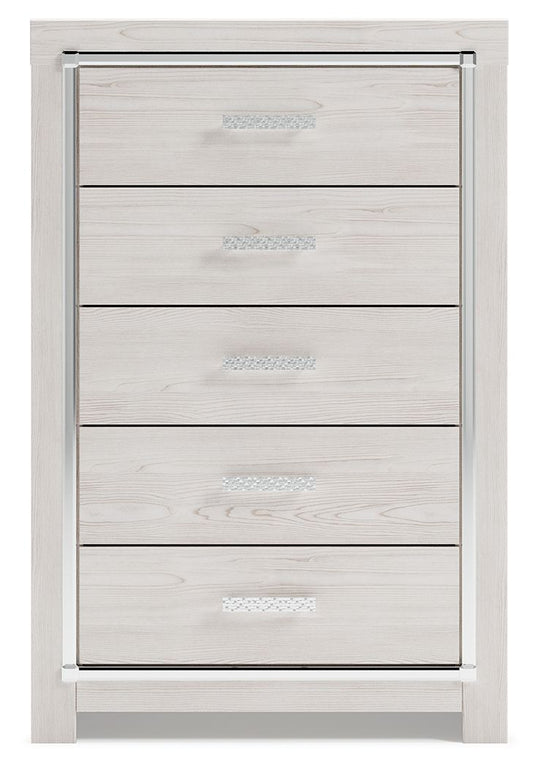 Reminiscent of Hollywood glamour of yesteryear, this chest of drawers interprets luxury in a decidedly modern way. A dazzling gray finish and faceted chrome-tone accents enhance the star power. Five smooth-gliding drawers provide enough storage to...Sale price $529.99Regular price $799.99Sale price $529.99Regular price $799.99