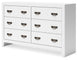 - Drawer interiors are lined with a wood grain laminate for a clean, finished look