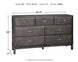 Casual contemporary design. Made with select wood solids, veneers and engineered wood. Contoured drawer fronts with pressed veneer face. Dovetail drawer construction with metal center guides. Stylish metal bar pulls. Captain’s style storage bed features a large assortment of drawer storage in the side rails, footboard and headboard. Note full size bed features storage on only one side rail.