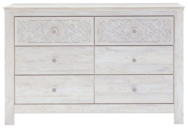 Paxberry - Six Drawer Dresser - Medallion Drawer Pulls - Whitewash