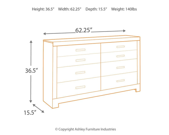 SALE               Culverbach - Dresser Culverbach - Gray - Dresser 58.7"W x 15.31"D x 36.42"H - 140.0 lbs Culverbach - Gray - Bedroom Mirror 41.34"W x 0.98"D x 35.35"H - 38.0 lbs A sophisticated modern chunky look with large satin nickel...Sale price From $449.99Regular price $699.99Sale price From $449.99Regular price $699.99