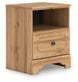 - Drawer interior is lined with a faux linen laminate for a clean, finished look