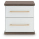 - Two-tone finish (dark brown finish over replicated walnut grain; matte white finish)