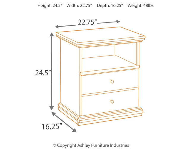 Willowton - Two Drawer Night Stand - Brown / Beige / White