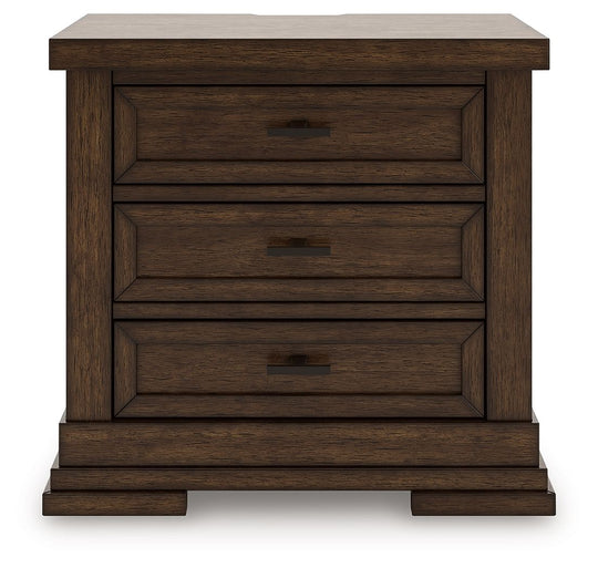 Taffenbrook - Three Drawer Night Stand - Medium Brown