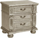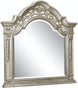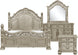 Specifications: Bedroom set includes queen bed, nightstand, dresser and mirror. Made of oak veneer, wood and engineered wood. Platinum gold finish. Headboard and footboard with scroll insert. Foundation/box spring required. Nightstand with 3 dovetail drawers with ball bearing glides. Dresser with 9 dovetail drawers with ball bearing glides and bottom storage cabinet. Dark bronze drop handles. Prop 65 Information.