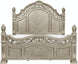Product Description: Old-World European styling is captured in the dramatically elegant Catalonia Collection. Traditional design elements reign at every turn - egg and dart molding, acanthus leaf carving, bead molding, gold tipping and extravagant carvings - creating a sophisticated look for your bedroom. Metal scrollwork provides additional visual interest to the headboard and footboard.