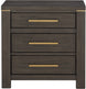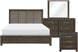 Product Description: The elegant modern profile of the Scarlett Collection will be the perfect addition to your bedroom. Cashew solid wood and mindy veneer is finished in a brownish gray with gold finished hardware and accent banding lending subtle contrast to the profile of the queen bed. The headboard features LED backlighting, enhancing the gray fabric headboard insert while the mounted USB port provides convenient function.