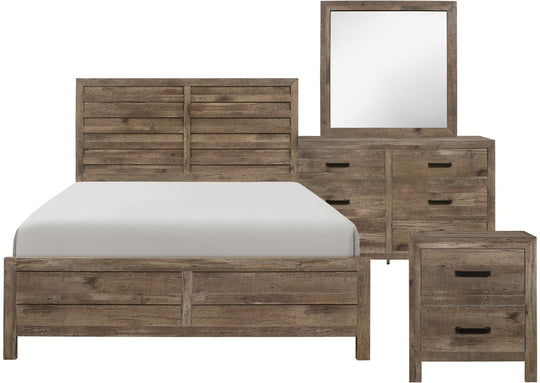 SALE               Mandan Queen Bed 4pc Set - Pine Finish Includes: Queen Bed / Dresser / Mirror / X1 Night Stand Product Description: The modern lines of the Mandan Collection are blended with transitional aesthetic to create a unique offering for your bedroom. Utilizing printed faux wood...Sale price $1,999.00Regular price $2,799.00Sale price $1,999.00Regular price $2,799.00