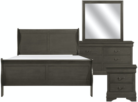 SALE               Mayville Queen Bed 6pc Set - Gray Includes: Queen Bed (Head,Foot,Rails) / Dresser / Mirror / X 1 Night Stand Product Description: Traditional in design and modest in scale, the elegant Mayville Collection takes its design inspiration from the classic Louis Philippe styling. Burnished...Sale price $1,399.00Regular price $2,399.00Sale price $1,399.00Regular price $2,399.00