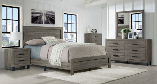 SALE             Neymorton - Panel Bedroom Set Contemporary design. Made with hardwood solids, engineered wood and MDF substrates. Finished in trend-right wood color. Art Deco inspired stepped moulding frame for a fresh take on classic contemporary design. Contemporary styled metal bar pulls are...Sale price From $1,759.95Regular price $2,799.95Sale price From $1,759.95Regular price $2,799.95