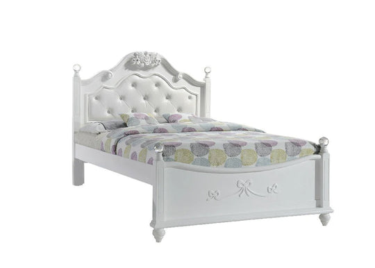 Description The charming Alana bedroom collection is what little girl dreams are made of. This bedroom set offers a sense of winder, featuring delicate bow moldings throughout, a button-tufted, white faux leather headboard, and sparkling crystal-ball...Sale price From $249.00Regular price $399.00Sale price From $249.00Regular price $399.00 -