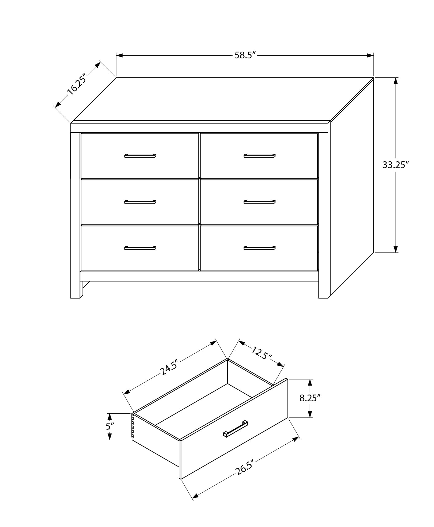 Revamp your bedroom sanctuary with this chic 6 drawer dresser that seamlessly blends modern aesthetics with unbeatable functionality. Crafted from a high-quality wood frame and finished in a trendy, bleached oak laminate, this dresser is the epitome of contemporary design, making it the ideal addition to any stylish bedroom. Experience the ease of durable construction that ensures your dresser withstands the test of time, while the drawers are meticulously designed with solid dove tail drawer construction for added sturdiness and longevity. Each of the drawers are finished on the inside, providing a polished look that speaks to meticulous craftsmanship. Say goodbye to assembly woes! Our dresser comes fully assembled, allowing you to enjoy your new stylish storage space right out of the box. Adorned with sleek metal handles, this dresser not only offers ample storage but also radiates modern elegance that complements your trendy taste. Plus, we stand behind our quality with a 2 year limited warranty, ensuring your investment is protected for years to come. This dresser can be added to the other matching pieces (sold separately) to create a bedroom set that elevates your contemporary space with style.