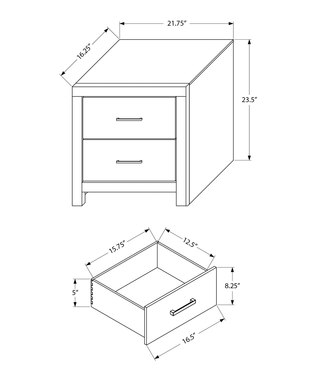 - Enjoy beautifully finished interior drawers that reflect a commitment to quality and sleek black metal handles, providing both functionality and an elegant look for your nighttime essentials.