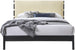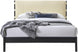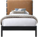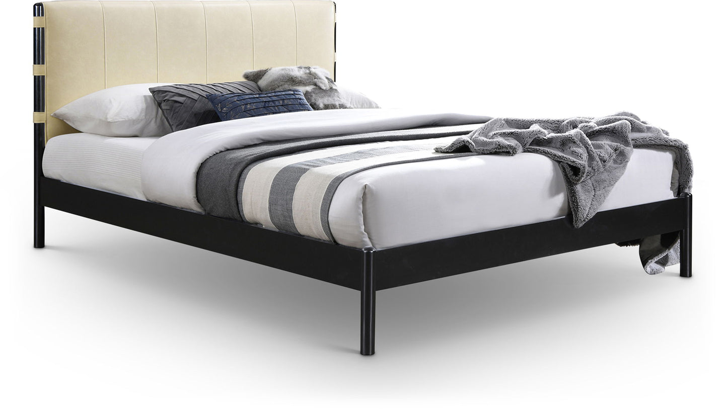 Perfect for elevating any bedroom decor, the Abigail vegan leather upholstered bed offers a blend of modern sophistication and comfort. Featuring a sleek black metal frame, this bed is enhanced by a vegan leather headboard for a striking contrast. The headboard's clean lines and vertical stitching lend a contemporary, eclectic vibe, while the soft, leather-like texture provides a touch of luxury.