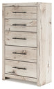 - Drawer interiors are lined with a faux linen laminate for a clean, finished look