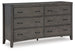 - Medium gray-brown finish with a blackened wood grain contrast; embossed wood grain texture