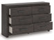 Prendonea - 6 Pc. - Dresser, Mirror, Full Panel Bed, 2 Nightstands - Charcoal